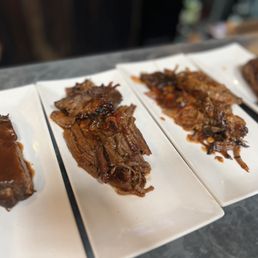 So I was walking past this place on my lunch break today when I smelt meat being smoked, and the smell was so good that I stopped for lunch. I got the half rack of ribs for lunch with Cole slaw and a Ceaser salad. The Cole slaw was very tasty and was not drenched in sauce and had a good balance to the flavors. The Ceasar was average but tasted good, and the veggies were very fresh in both salads. The star of the dish was the ribs, by far... the meat fell off the bone (literally) as I picked up the ribs, and a butter knife is what I used to cut the ribs apart. The sauce had a very small spice kick to it and was a tasty sauce. I still perfered a dry rub on my ribs, but the sauce here was still very good and flavorful. I will definitely be back because I want to try the brisket next, although it might be hard to pass up on the ribs, they were that good.